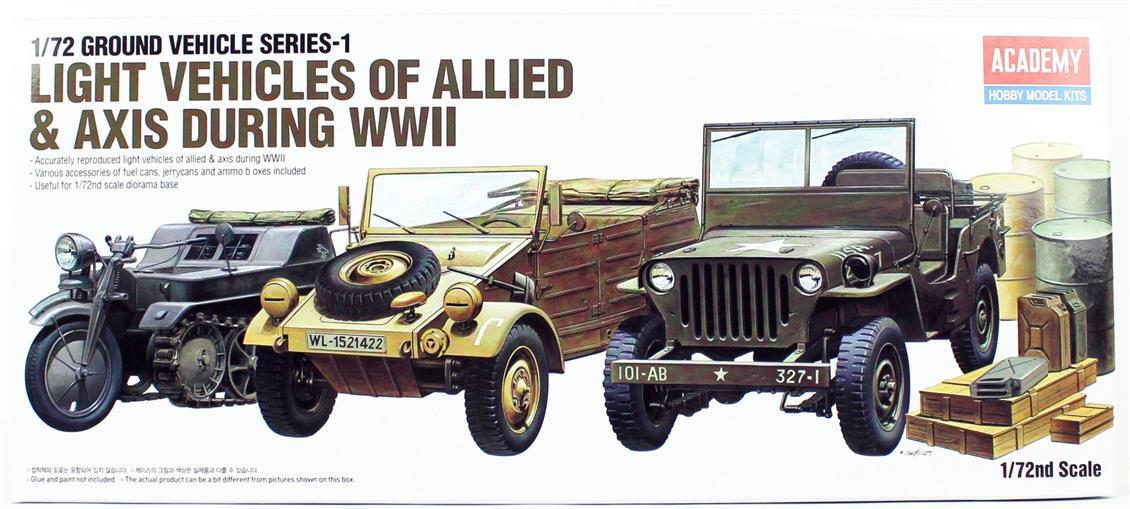 VIDEO Academy 13416 1/72 Alman ve Amerikan Hafif Araçları Demonte Plastik Maket Seti