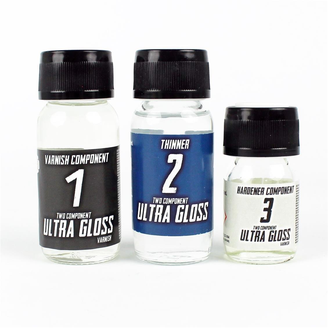 İki bileşenli ultra parlak cila. Lake ve sertleştiriciyi 3/1 oranında karıştırın. 60 ml'lik bir şişe tiner, 60 ml cila ve sertleştirici ve iki şırınga içerir. Modellerinizde maksimum parlaklığı elde edin. Kutudaki talimatlar.