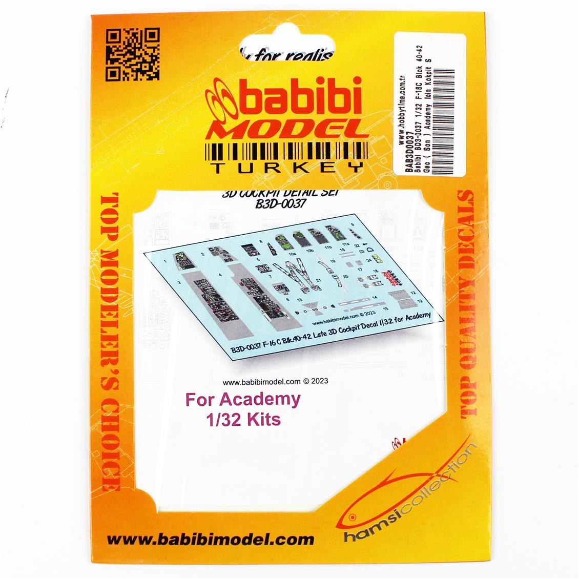 Babibi BD3-0037 1/32 F-16C Blok 40-42 Geç ( Son ) Academy İçin Kokpit Seti, Dekal Çıkartma