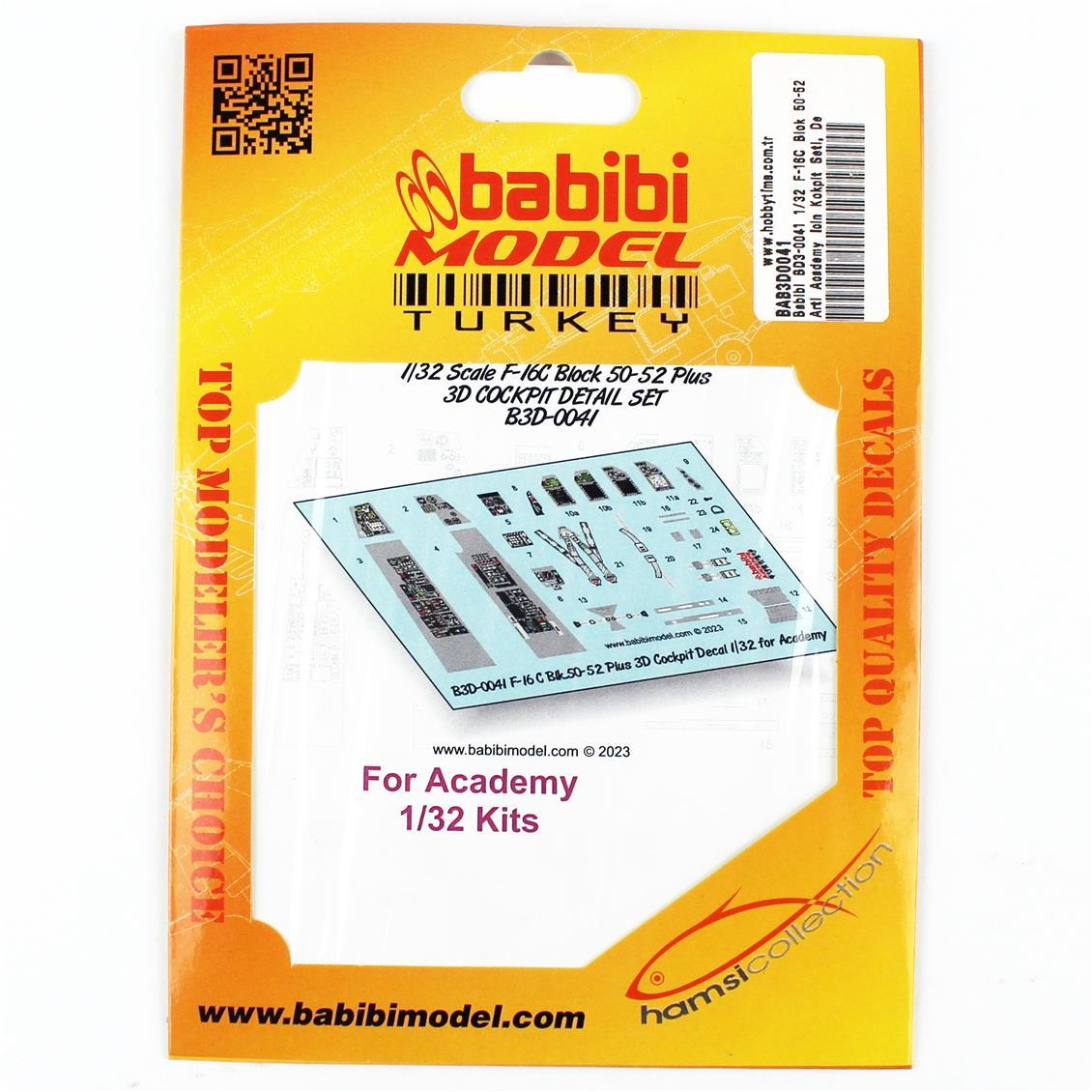Babibi BD3-0041 1/32 F-16C Blok 50-52 Artı Academy İçin Kokpit Seti, Dekal Çıkartma