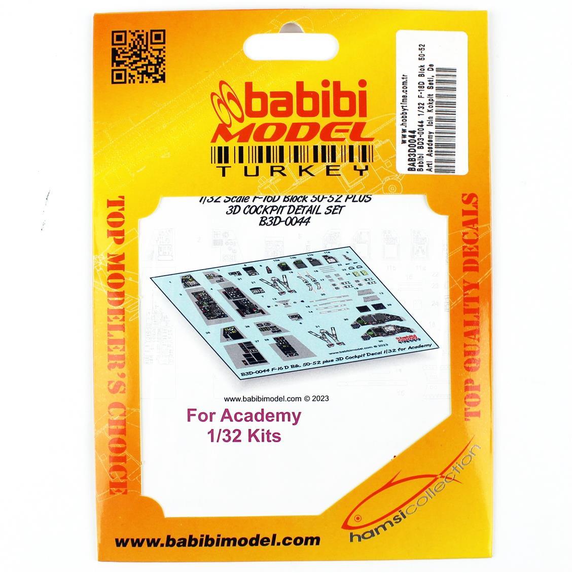 Babibi BD3-0044 1/32 F-16D Blok 50-52 Artı Academy İçin Kokpit Seti, Dekal Çıkartma