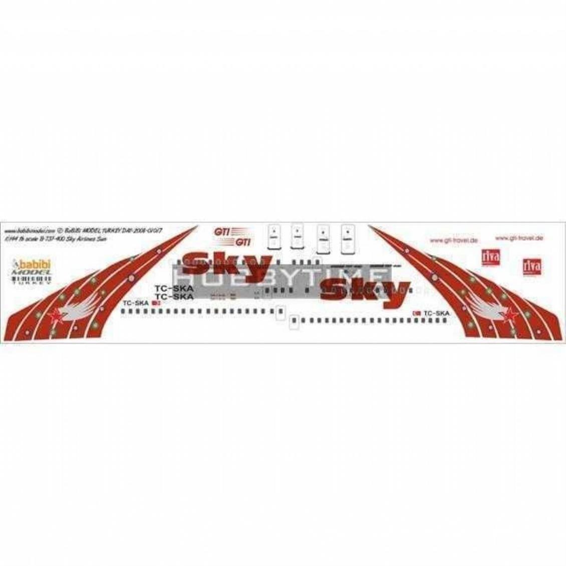 SkyHava Yolları tarafından kullanılan Boeing 737-400 Sun isimli uçağınındekalidir.Tek parça basılı dekal kağıdıdır.Babibi Firması birçok hava aracınındekalinin bulunduğu özellikle Türk modelciler tarafından çokça tercih edilen bir firmadır.