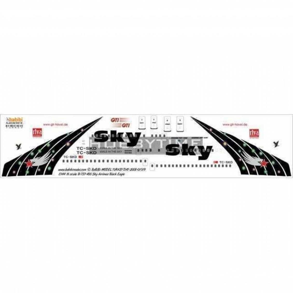SkyHava Yolları tarafından kullanılan Boeing 737-400 Black Eagle isimli uçağınındekalidir.Tek parça basılı dekal kağıdıdır.Babibi Firması birçok hava aracınındekalinin bulunduğu özellikle Türk modelciler tarafından çokça tercih edilen bir firmadır.
