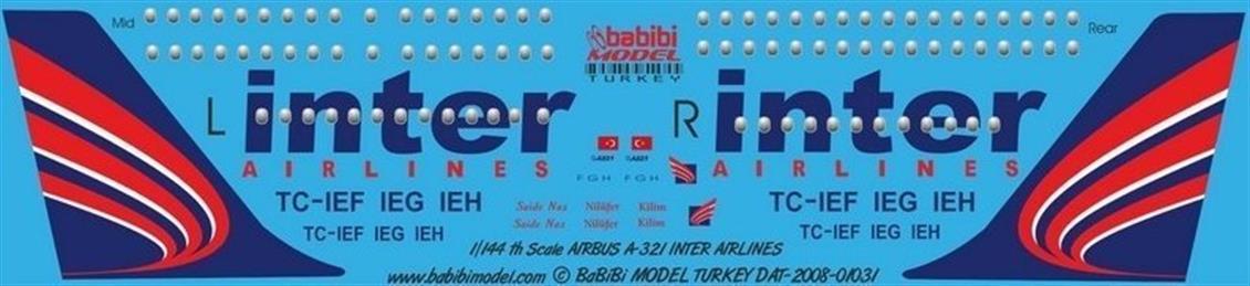 InterHava Yolları tarafından kullanılan Airbus 321 uçağının dekalidir.Tek parçabasılı dekal kağıdıdır.Babibi Firması birçok hava aracının dekalinin bulunduğu özellikleTürk modelciler tarafından çokça tercihedilen bir firmadır.