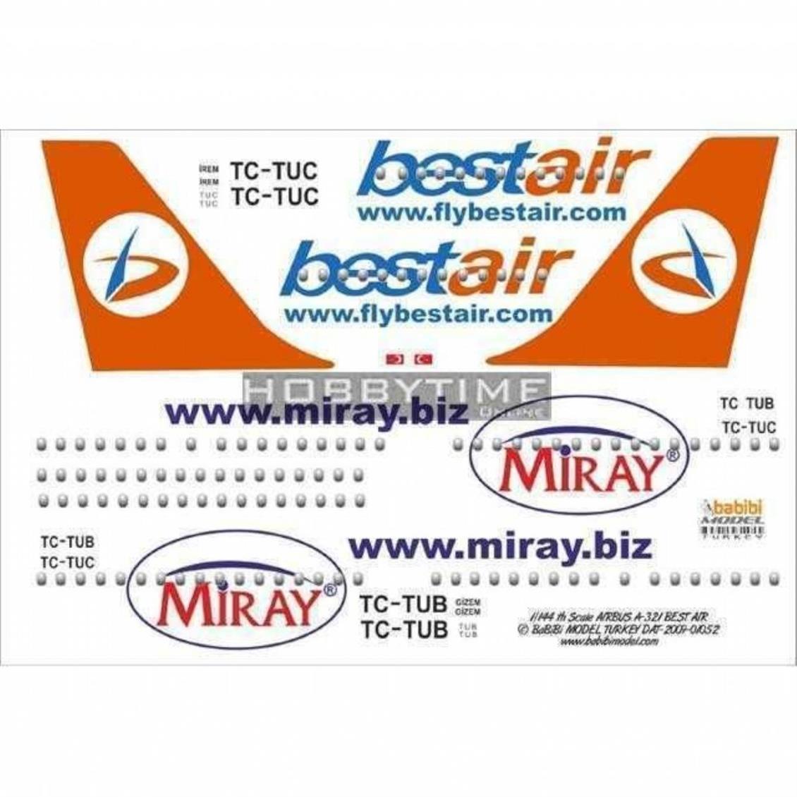 Bestair Hava Yolları tarafından kullanılan Airbus 321 uçağının dekalidir.Babibi Firması birçok hava aracının dekalinin bulunduğu özellikle Türk modelciler tarafından çokça tercih edilen bir firmadır.