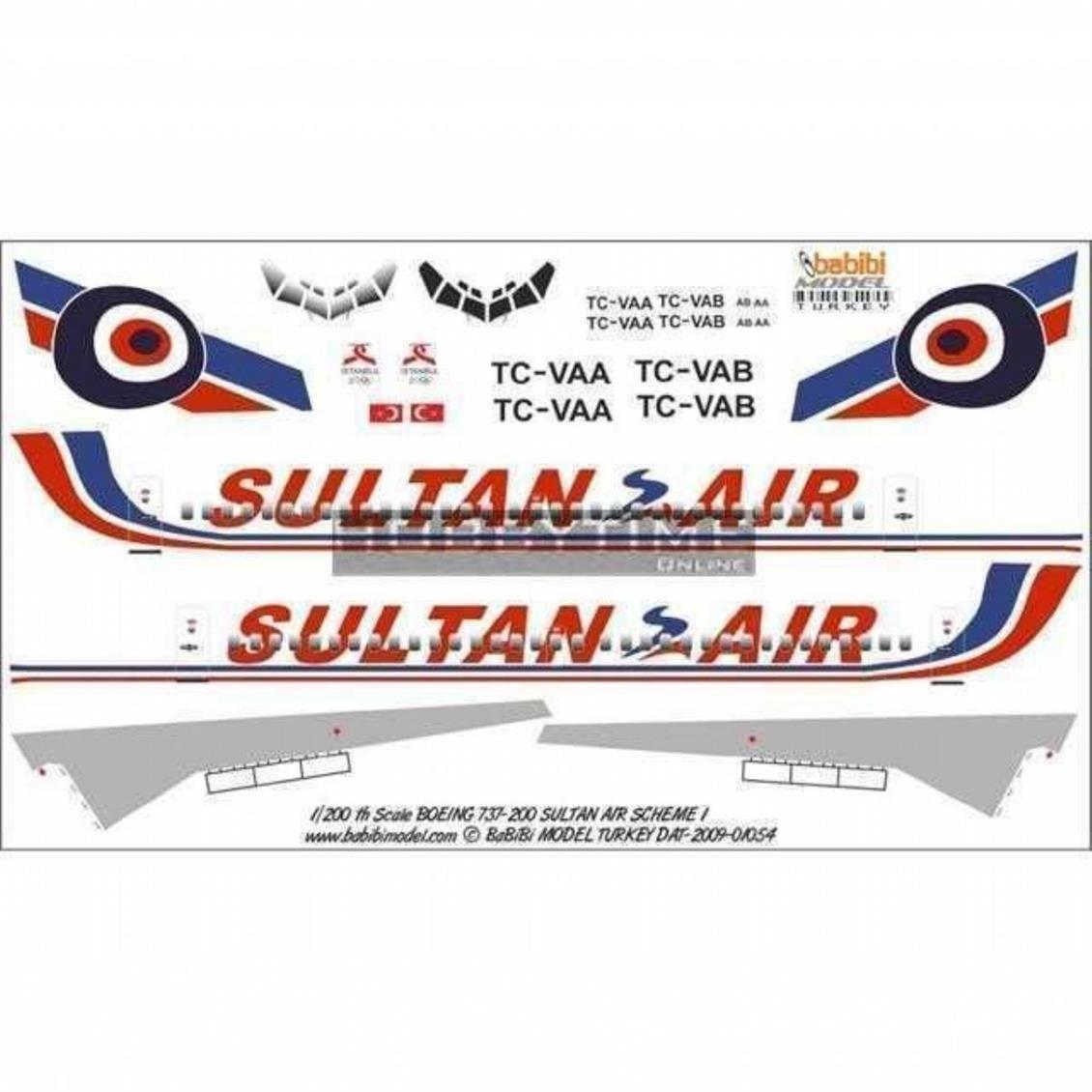 SultanHava Yolları tarafından kullanılan Boeing 737-200 uçağının dekalidir.BabibiFirması birçok hava aracının dekalinin bulunduğu özellikle Türk modelciler tarafından çokça tercih edilen birfirmadır.