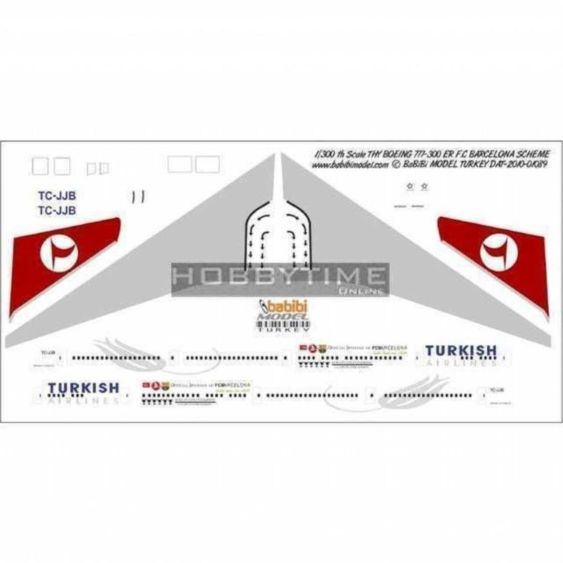 TürkHava Yolları’nın FC Barcelona takımı tarafından kullanılan Boeing 777-300uçağına ait dekalidir.Babibi Firması birçok hava aracının dekalinin bulunduğuözellikle Türk modelciler tarafındançokça tercih edilen bir firmadır.