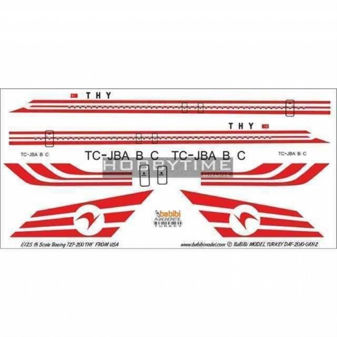 Babibi DAT01092 1/270 Ölçek, Thy, Boeing 727-200, From Usa, Dekal Çıkartma