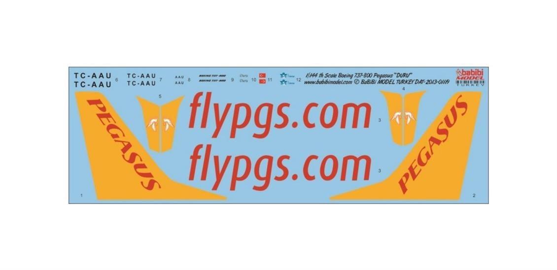 Babibi DAT01119 1/144 Ölçek, Pegasus, Boeing 737-800, Duru, Dekal Çıkartma