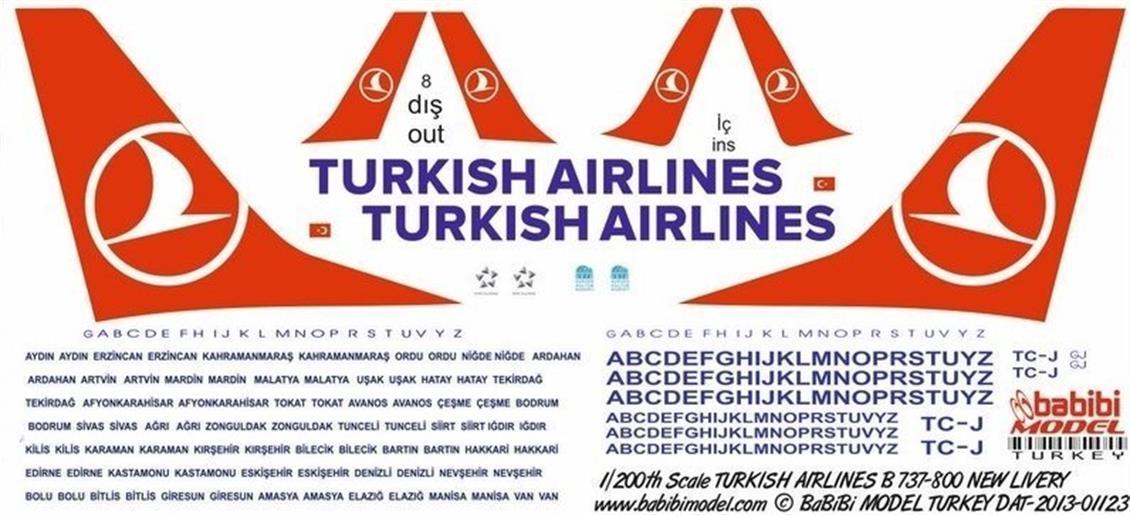 Babibi DAT01123 1/200 Ölçek, Thy, Boeing 737-800, Yeni Şema, Dekal Çıkartma (BADAT01123)