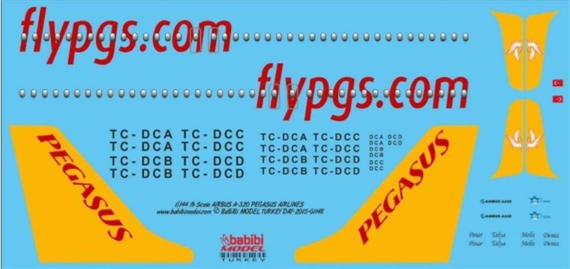 Babibi DAT01148 1/144 Ölçek, Pegasus, Airbus A320, Dekal Çıkartma