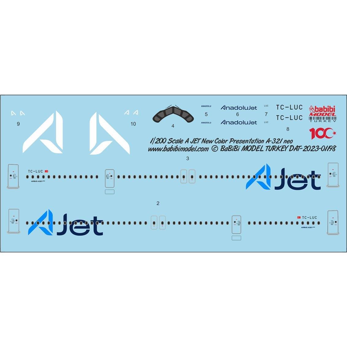 Babibi DAT01198 1/200 A Jet Airbus A-321 neo Yeni Logolu Decal Çıkartma