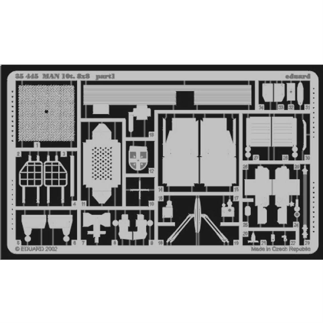 Man 10tonluk 8x8 aracının Revell kiti için önerilen Photo Etch setidir.Eduard Firmasıbirçok aracının Photo Etch i bulunduğumodelciler tarafından çokça tercih edilen Önde gelen detay seti firmasıdır.