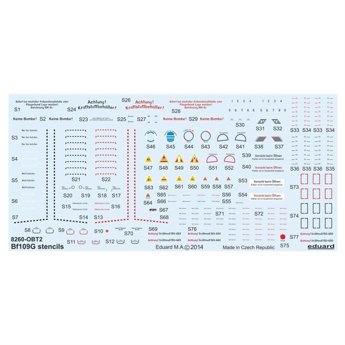 Messerschmitt BF-109 G serisi avcı uçağı, uyarı yazıları çıkartma (dekal) setidir.