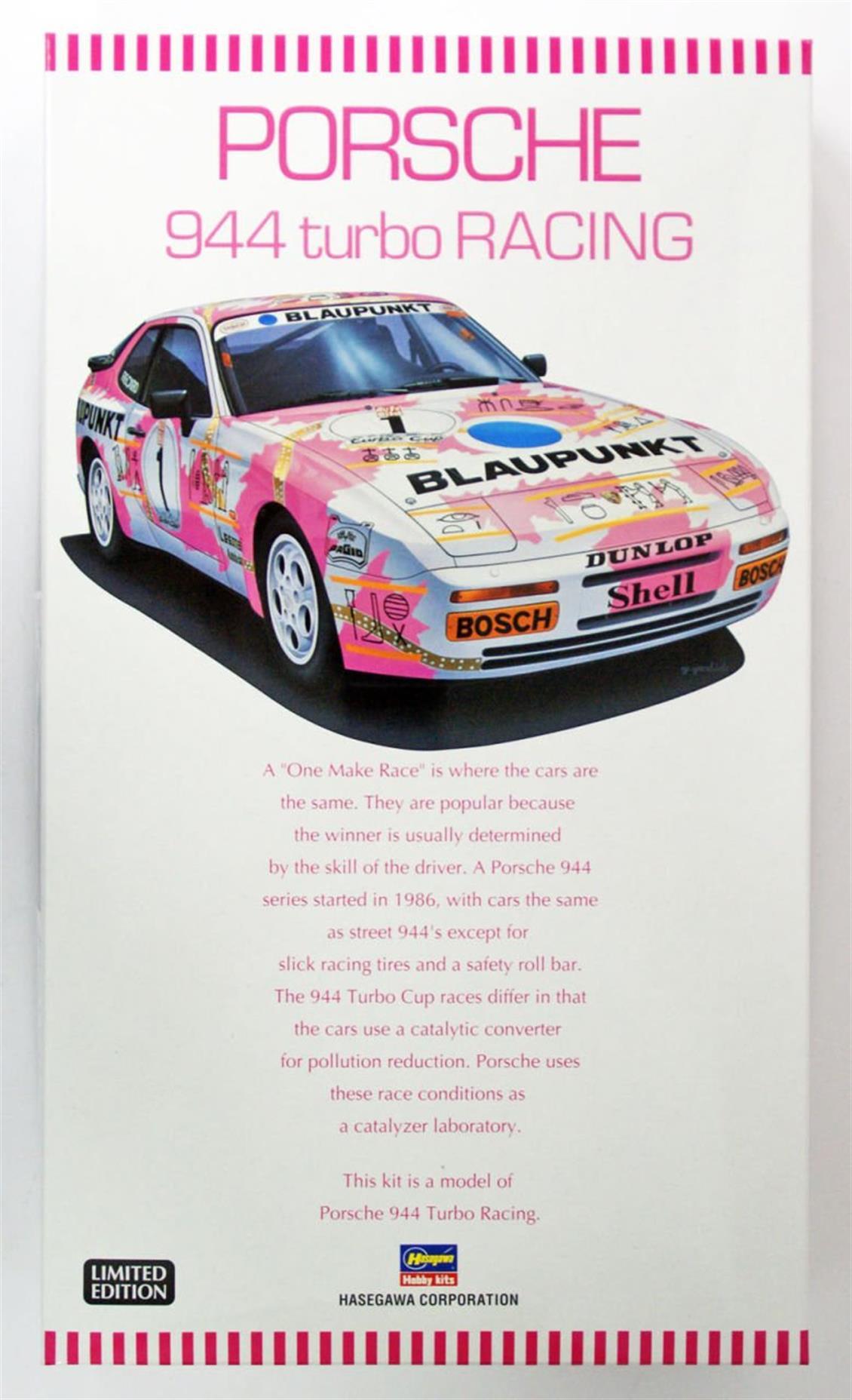Kalıbı ve kaliteli dekal kağıdı ile after maerketler dışında kiti olmasan 944'ün bu profildeki yarış arabası son derece detaylı ve kaliteli Hasegawa kalıplarından olup modelcilerin çokça tercih ettiği kitler arasındadır.