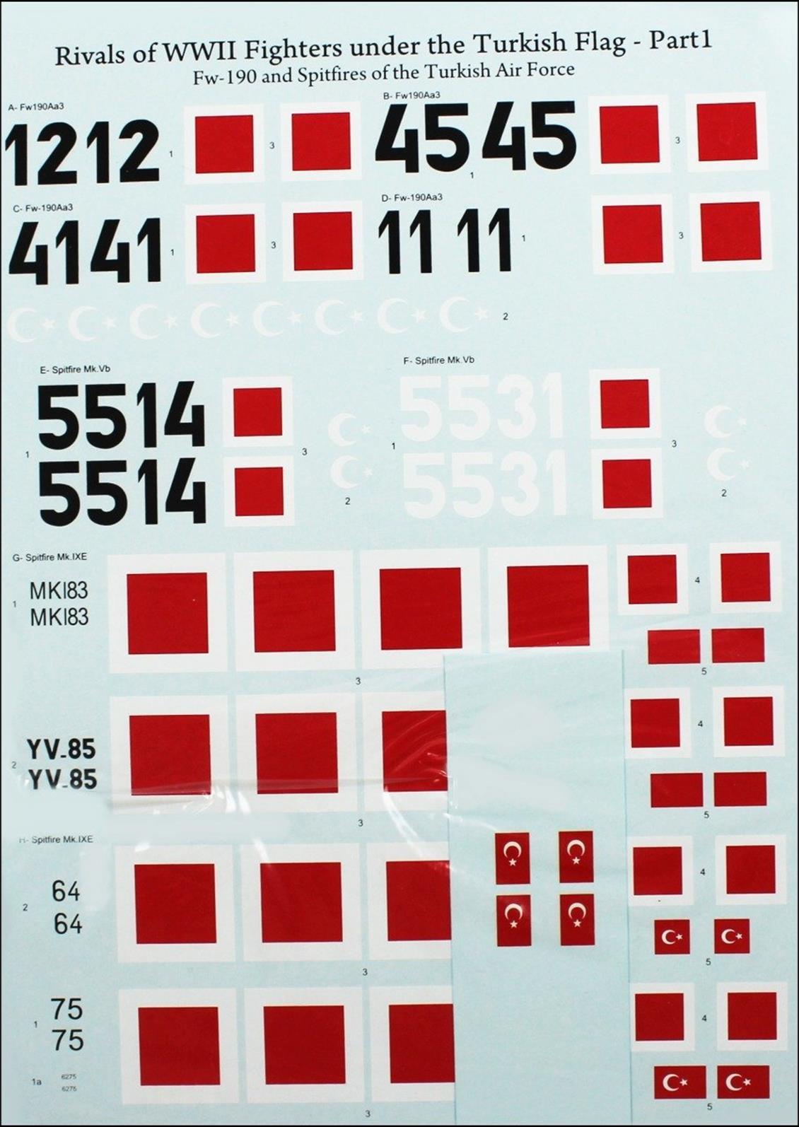 Özellikler 2.dünya savaşında Türk Hava Kuvvetlerinde uçmuşolan FW-190 ve Spitfire uçaklarının fotoğrafları referans alınarak çizilmiş sonderece kaliteli ve ince bir dekal kağıdı olup her Türk modelcisi tarafındangüvenle tercih edilen bir üründür.