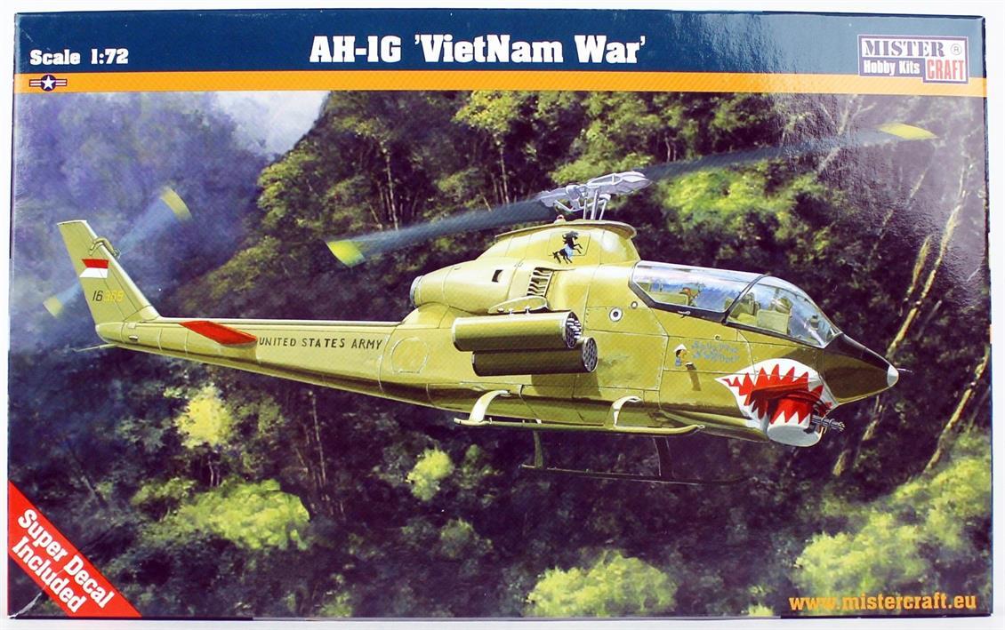 Türk ordusu tarafından da kullanılan Cobra saldırı helikopterinin G versiyonu olup Vietnam savaşında Amerikan ordusunun tek saldırı helikopteri olarak yer birliklerini büyük faydası olan az parçalı ve basit yapısı sayesinde yeni başlayan modelciler için Mistercraft firmasının birebir fiyat performans kitlerindendir.