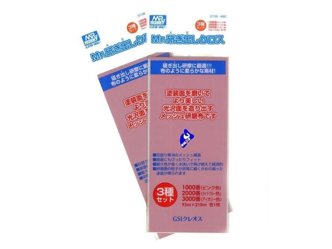 Mr.Hobby GT-36 Zımpara Kumaşları, 3 Adet, No.1000,2000 ve 3000, Herbirisi 93x210 mm.