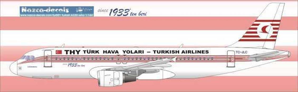 1/144 ölçekli Airbus A 320 yolcu uçakları ile birlikte kullanabileceğiniz Türk Hava Yolları dekali.1/144 ölçekli Revell, Airfix, Minicraft ve diğer plastik model kitlerle kullanabileceğiniz son derece ince detaylara sahip bu klasik tip dekaller le yolcu uçaklarınızı dilediğiniz şekilde dekore edebilirsiniz.