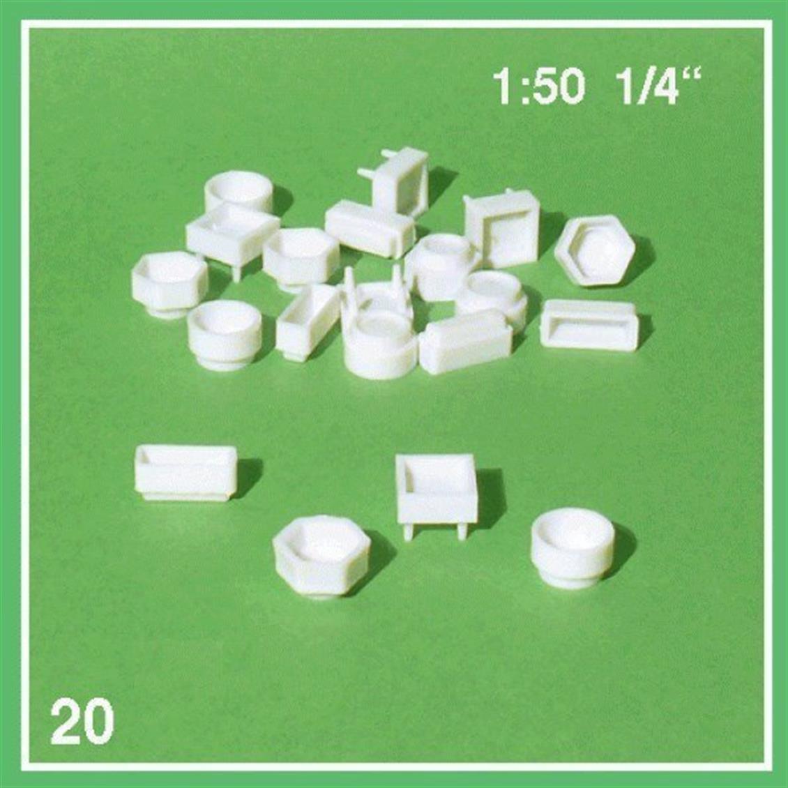 Schulcz 553600 1/50 Ölçek, Saksı Seti-Karışık-Beyaz -20 Adet (SH553600)