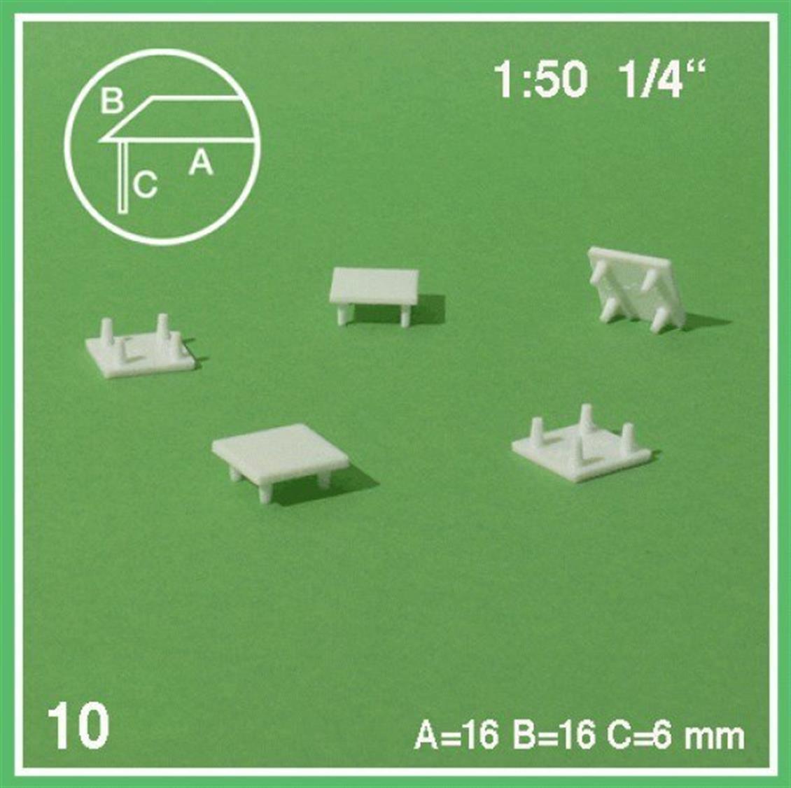 Schulcz 5561102 1/50 Ölçek, Kare Sehpa -16X16X6 Mm--Beyaz -5 Adet