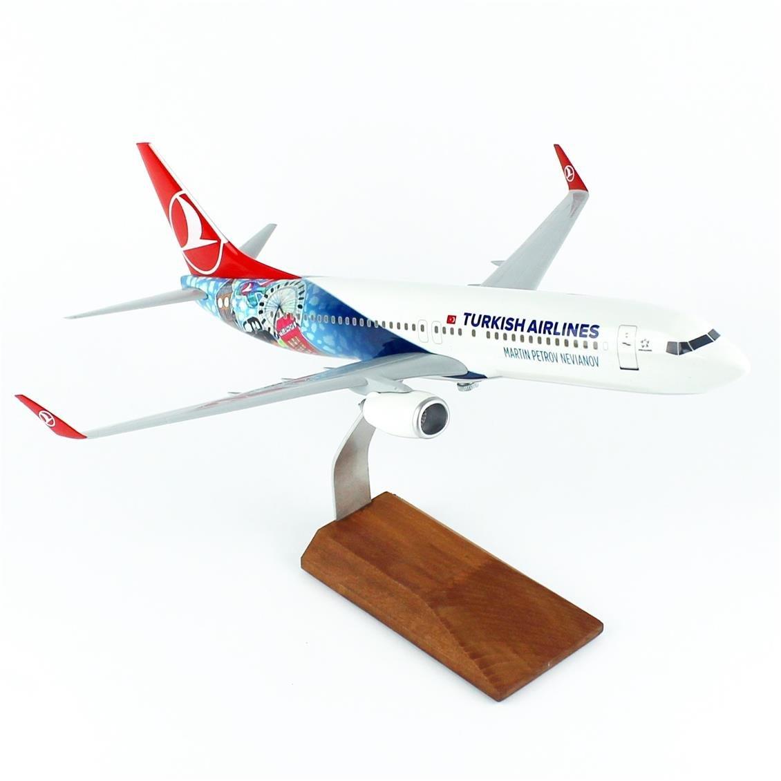 THY004 1/100 Ölçek, THY London Logolu B737-800 Yolcu Uçağı, Sergilemeye Hazır Ahşap Standlı Model