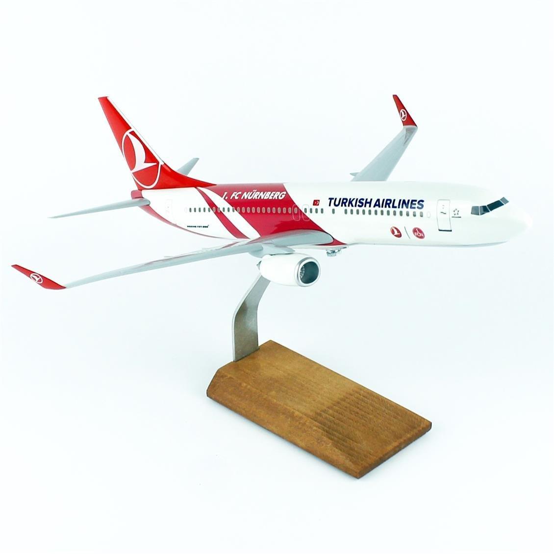 THY005 1/100 Ölçek, THY Nurnberg Logolu B737-800 Yolcu Uçağı, Sergilemeye Hazır Ahşap Standlı Model