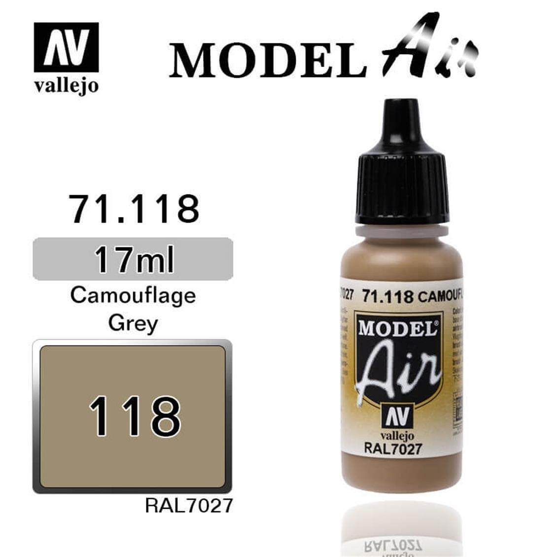 Vallejo 71118 17 ml. Camouflage Grey, Model Air Serisi Maket Boyası